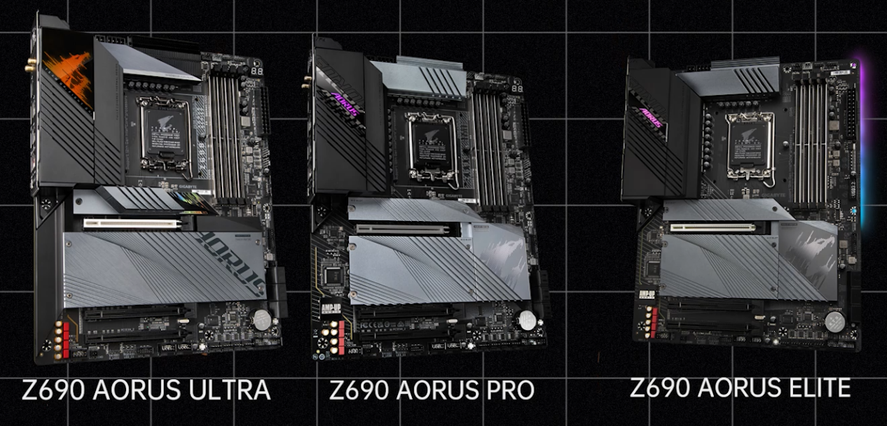性能级玩家可以考虑AORUS ULTRA、PRO和ELITE系列主板与12700K/KF搭配使用。两者都采用了SMD贴片工艺内存(仅限DDR5系列)与显卡插槽,配备第二代堆栈式散热器和第二代直触式热管。其它扩展规格方面,两者基本相同,Z690 AORUS ELITE在供电和散热方面相比前两款稍有精简,配备全覆盖散热片,扩展规格则也与ULTRA、PRO基本相同,当然在性价比方面也更加诱人。ELITE分了DDR5和DDR4款和有/无WIFI版,其中ELITE还推出了MATX中板,也分为有/无WIFI两个版本。