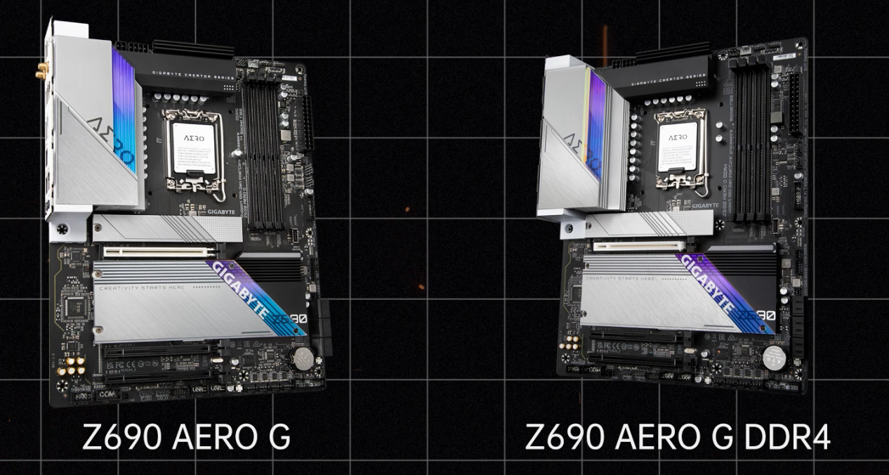 新增的Z690 AERO系列被划分在超耐久分类下。该系列在银黑配色的外观设计承继了上代VISION的风格,白色的包装盒上注明了“Creator Motherboard”,专为设计师打造。目前AERO系列有Z690 AERO G的DDR4和DDR5两个版本,它们都支持WIFI 6。