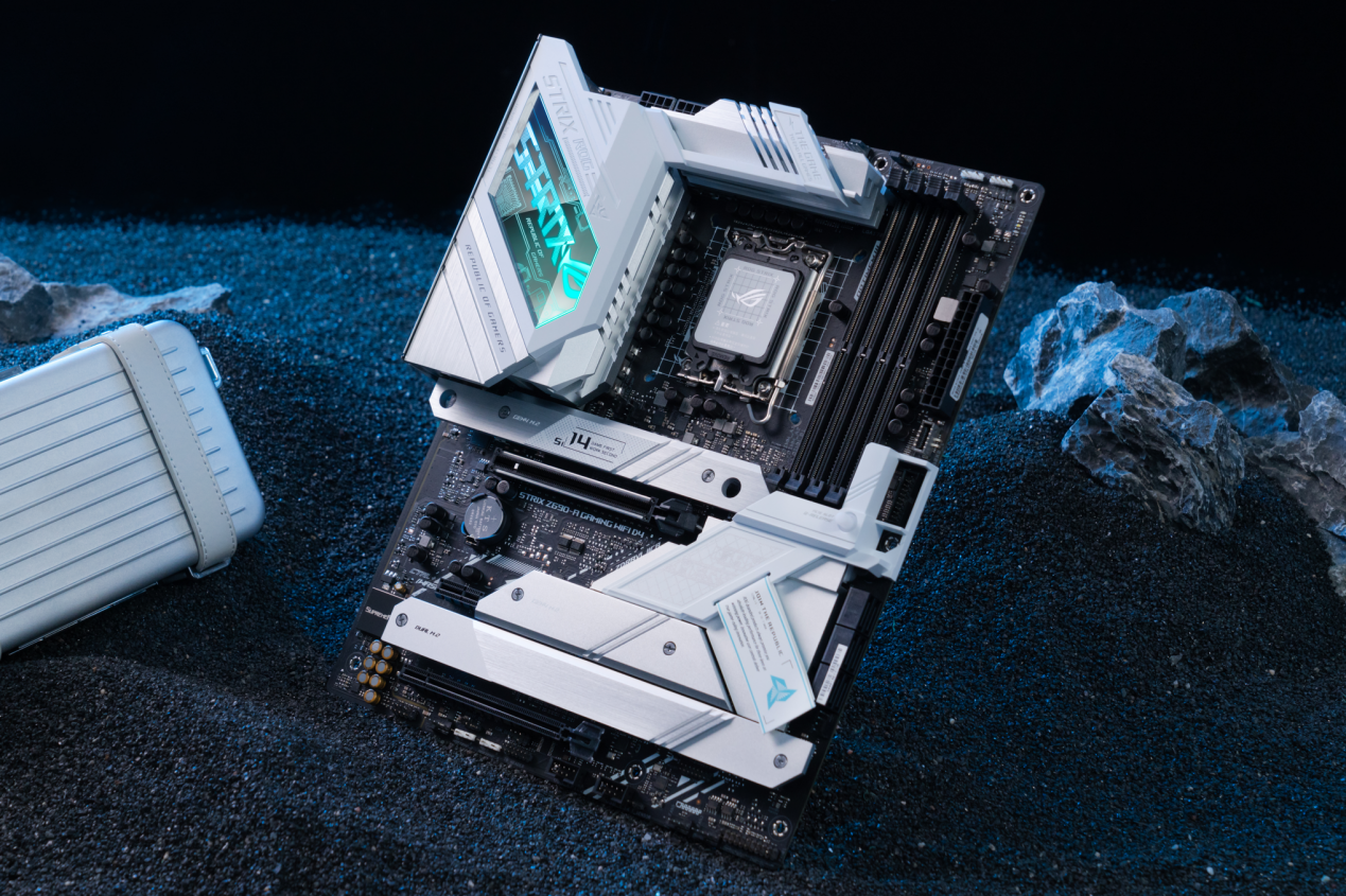 主板散热装甲的鳍片造型也进一步和雪武战姬形态进行了统一,代入感更强。设计师还奇思妙想地在主板芯片组散热装甲上融入了一个潮流ROG理线带的设计,丰富了主板上的设计元素,让主板看上去不那么冰冷。