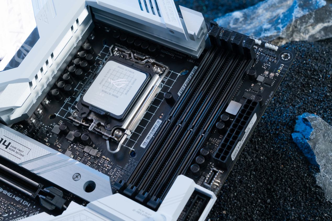 除了颜值够看,配置上ROG STRIX Z690吹雪主板也毫不妥协。为了适应第12代酷睿处理器在供电需求上的提升,ROG STRIX Z690吹雪主板采用了16+1供电模组,MOSFET采用了Visha新一代的SIC659,拥有整合上下桥的NexFET一体式设计,单颗可承载80A电流,能够提供充足的电流供应。