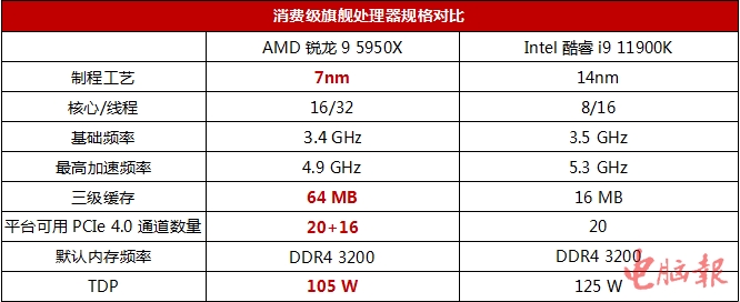 同是顶级旗舰,AMD锐龙9 5950X工艺规格全面领先