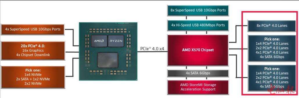 AMD锐龙5000平台拥有更多的PCIe 4.0通道,可以扩展更多高速存储设备
