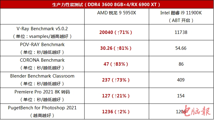 那么,接下来就一起来观赏AMD锐龙9 5950X毫无悬念的完胜吧。