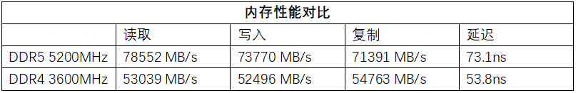 而DDR5内存方面,内存带宽的提升同样很明显,不过延迟相比DDR4也是上涨了不少,这就要靠更高的频率来弥补延迟的缺失了。