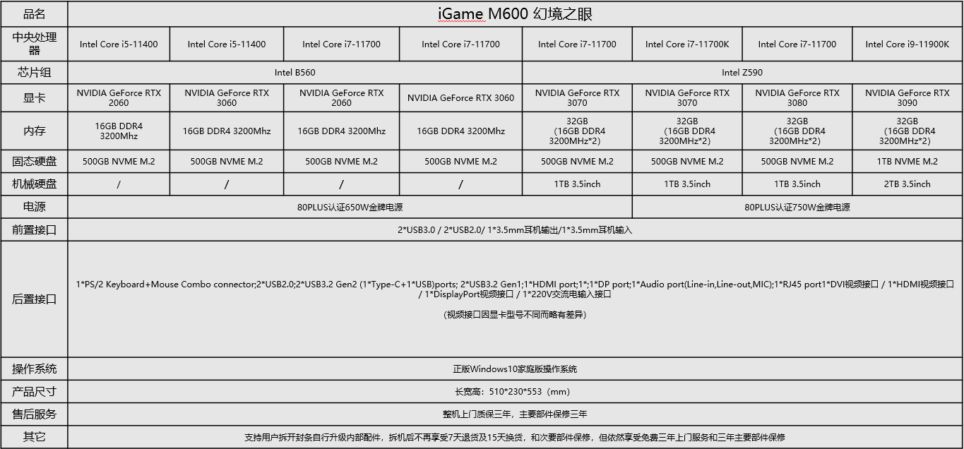 iGame M600还拥有多个不同价位的配置供玩家选择