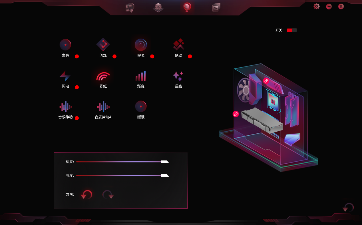 相对于机箱造型方面的优化,iGame M600这次在灯光方面也进行了全面的加强。前面板两侧的灯带由窄至宽,仿佛跑车赛道一般,灯带也升级到了RGB灯光。此外,底部的前方和侧面也拥有RGB琉璃灯效,和前面板的灯光形成呼应。当然,最绚丽的莫过于机箱的顶部,在U型出风口中间,有一条较粗的RGB灯带,安置在半透的亚克力材质下,开启后,朦胧中的柔和之美,犹如夜空中璀璨的银河星空。这个位置也被iGame称之为“幻境视窗”,非常有特色。值得一提的是,这些灯光都可以通过iGame Center进行调节,预设了9种灯效模式,玩家也可以自定义灯效。