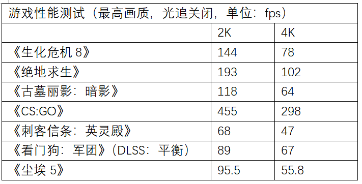 游戏性能测试方面,我们选择了几款时下流行的3A和电竞大作在2K/4K分辨率下进行测试。从测试结果来看,该主机在2K分辨率下能够以最高画质畅玩当下的热门游戏毫无压力。即使是4K分辨率下,也只需要适当降低画质就能无压力畅玩,作为一台电竞游戏主机还是非常不错的。