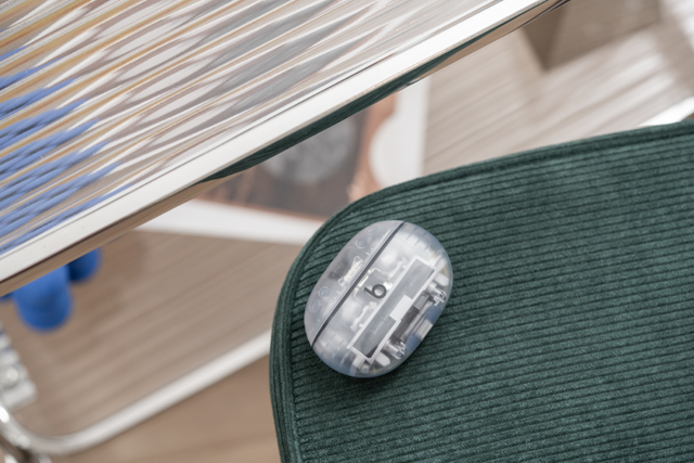 这次Studio Buds +并没有使用Beats标志性的红色,而是推出了一个全新的透明版,各种内部元器件都清晰可见,组件之间光滑无缝,可以说是赏心悦目了。