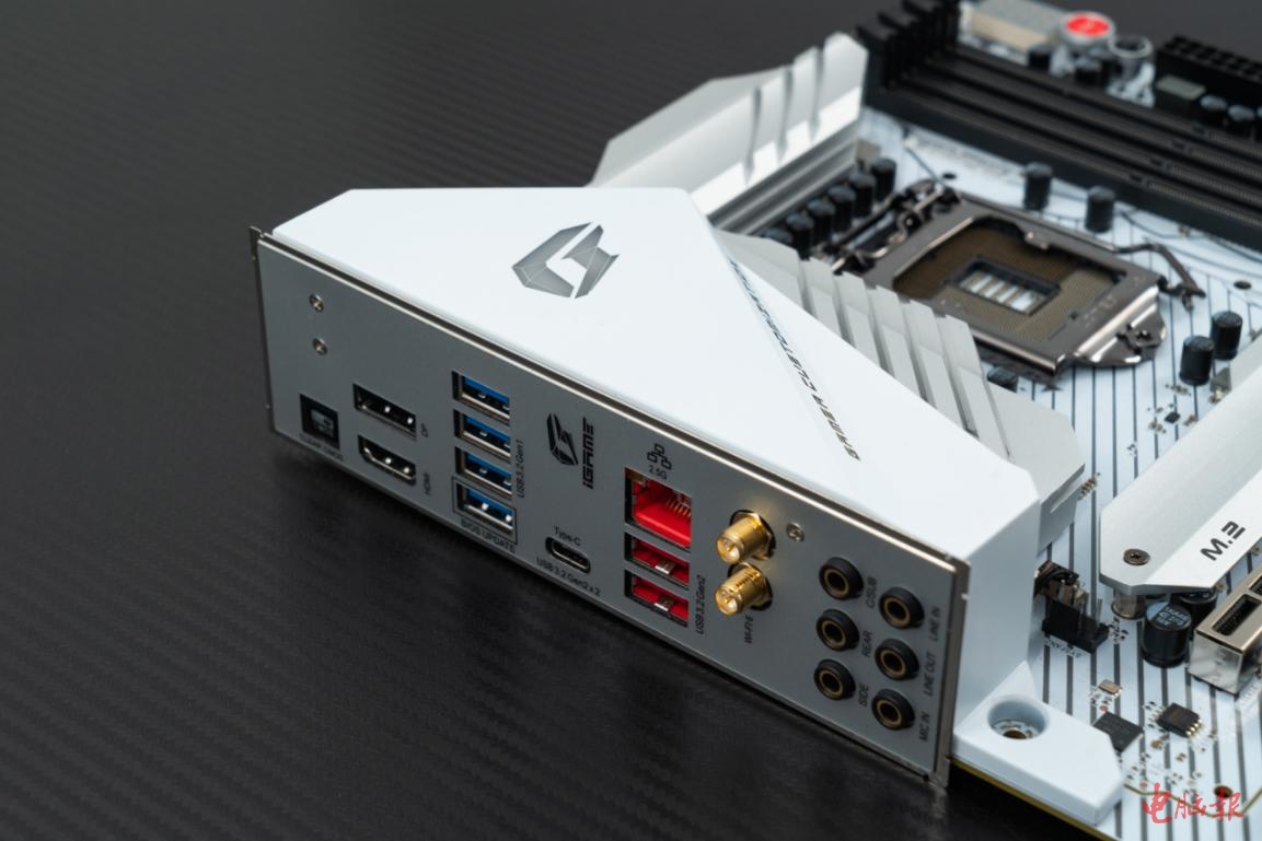 iGame Z590 Vulcan W V20作为旗舰主板,还搭载了一体式I/O面板,简化了装机流程同时也更加美观,I/O接口的配备也较为齐全,拥有3个20Gbps的USB 3.2 Gen2 ×2接口(2×Type-A+1×Type-C)、4个USB 3.2 Gen1 Type-A接口、1个HDMI接口和1个DP接口。同时也为超频玩家提供了方便的BIOS清除按键,可以方便的重置BIOS。