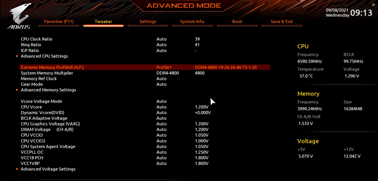 雪雕B560M在BIOS中选择XMP模式就可以一键使用高频内存预设参数,实测兼容DDR4 4800内存毫无压力