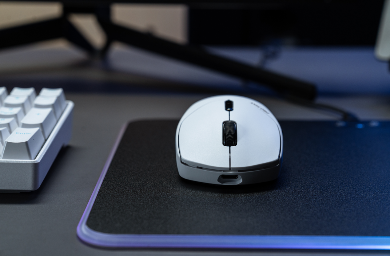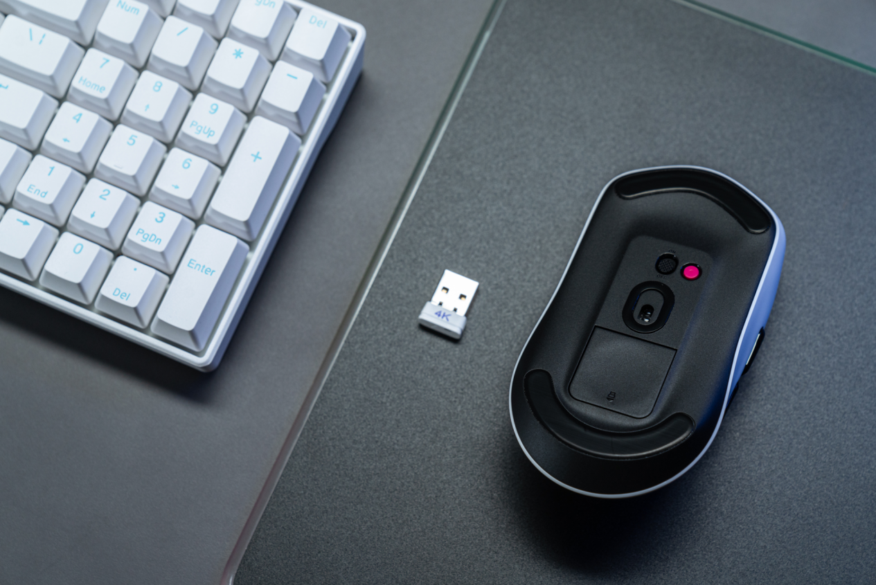 该系列鼠标同样支持蓝牙开核的功能,在无线模式下,同时按下鼠标侧面前进键 + 后退键以及滚轮中键 3 秒以上,左右按键缝隙处的指示灯呈蓝灯慢闪,此时证明隐藏的蓝牙模式已经被激活。
