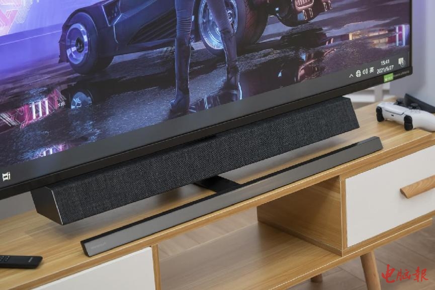 Bowers&Wilkins是音响界的知名品牌,很多高端汽车和耳机中都能看到Bowers&Wilkins音响的身影。飞利浦猛腾559M1RYV自带的Soundbar就出自Bowers&Wilkins,表面由Kvadrat制作的高级扬声器面料覆盖,内部由2个10W中高音扬声器和1个20W低音扬声器组成,总功率达到了40W,音量很足。