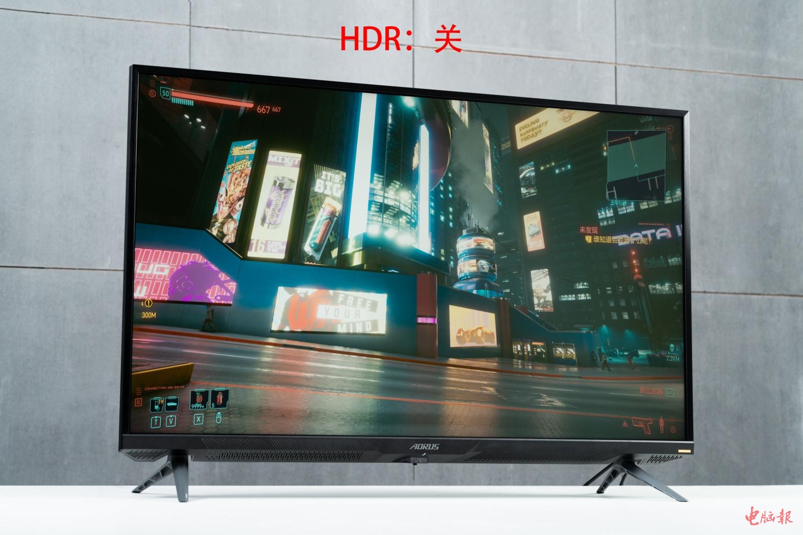 AORUS FV43U除了有经典的战术电竞辅助加持外,它的视觉效果也是非常震撼的,游戏画面中各种细节,高清电影中所表现出来的质感都相当精细,43英寸大屏带来的极佳沉浸感体验,是一般小尺寸屏幕所不能达到的。在游玩《赛博朋克2077》这种支持HDR的游戏时,游戏画面的明暗细节得到了进一步优化,原本灰蒙蒙的画面变得绚丽了起来,光影效果更强了,同时暗部画面也有丰富的细节展现,玩家可以尽情欣赏夜之城的美景。