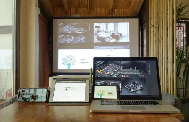苹果笔记本、苹果手机和平板、安卓手机四屏同投