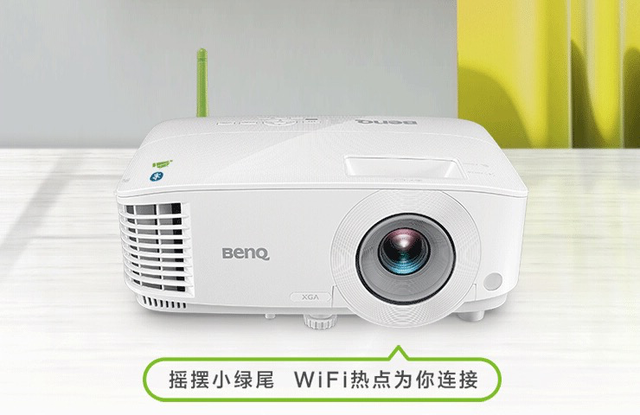 对此,明基E540给出了一套智慧化的解决方案。明基E540内置深度定制的智能商务系统,支持2.4G/5G双频WiFi,并带有标志性的绿色“天线小尾巴”,可以直接与演示设备建立连接实现无线投屏,最大程度杜绝了无线局域网不稳定导致的投屏中断,双网卡设计还不影响投影机连接外网上网演示,考虑非常贴心。