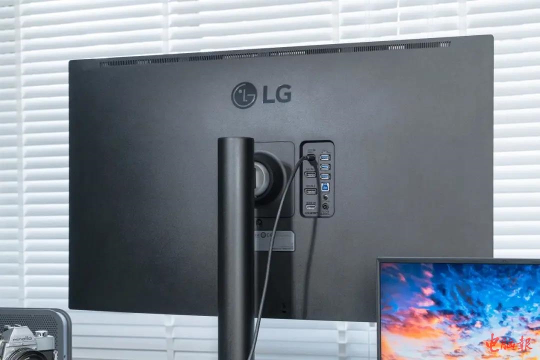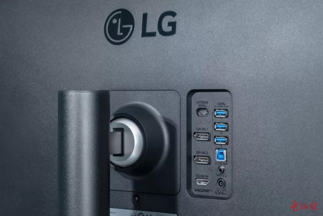 初识LG 32EP950,笔者立马被其轻薄的机身所吸引到了。作为一款屏幕尺寸达到31.5英寸的产品,LG 32EP950屏幕部分厚度只有35.3mm,不含底座的重量仅3.8kg,加上金属底座全重也才5.5kg,可是比市面上同尺寸的专业显示器轻薄了不少。LG 32EP950之所以能做到这一点,除了采用电源外置的设计之外,主要原因在于OLED面板每个像素都拥有能自发光的特性,面板结构上就没有单独的光源或者彩色滤光器,面板结构上比LCD面板更简单,所以就能将面板厚度做得更薄。对于LG 32EP950这样的大尺寸显示器来说,机身轻薄的好处在于不会给人留下机身粗笨的印象,对于摆放空间的要求不高,也更利于搬动。