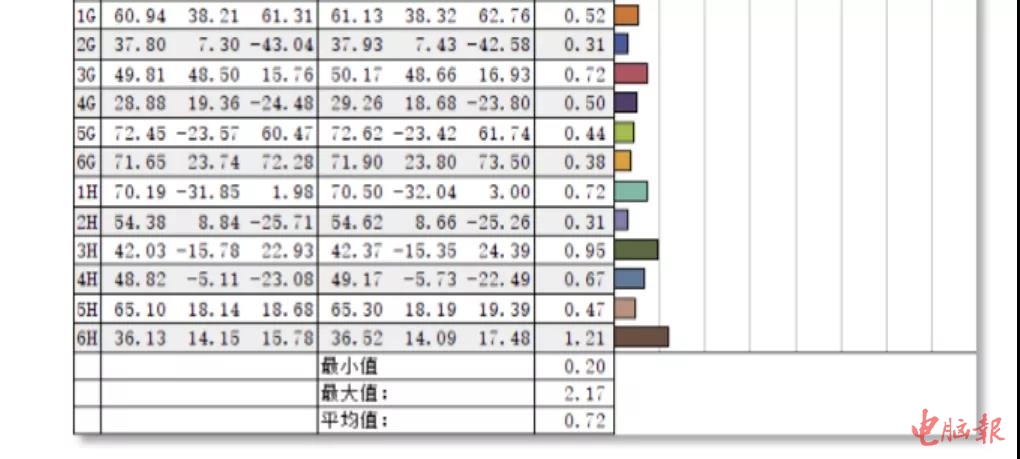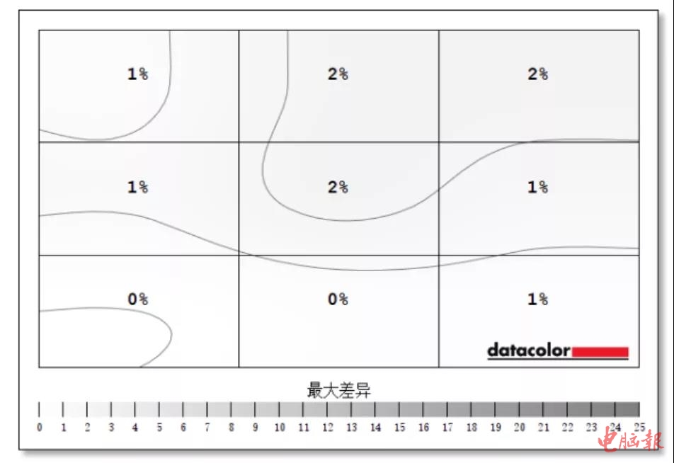 从测试结果来看,LG 32EP950的色域表现非常的优秀,99%的DCI-P3以及97%的AdobeRGB色域与官方数据非常的接近。以往测试的专业显示器,DCI-P3色域能达到95%就是比较好的表现了,LG 32EP950 99%的DCI-P3毫无疑问是专业显示器中的顶尖水准了。前面我们提到LCD显示器漏光是无法避免的,只是不同品质的产品控制好坏的问题。所以在屏幕亮度均匀性上,一般LCD显示器的屏幕不同区域亮度偏差至少在10%以上,部分专业产品通过加入分区调校,也只能将亮度差距控制在6%左右。而在100%亮度下,LG 32EP950屏幕各区域的亮度偏差只有2%,只能说相当出色。另外我们还测试了48色色彩精准度,LG 32EP950△E平均值仅0.72,△E最大值也才2.17,表明产品的色彩还原同样精准。就SpyderX校色仪的测试成绩来看,LG 32EP950得益于采用了OLED面板,在色域、亮度均匀性、色彩精准度方面都表现除了极强的实力,在笔者测试过的专业显示器中属于顶尖的水准。