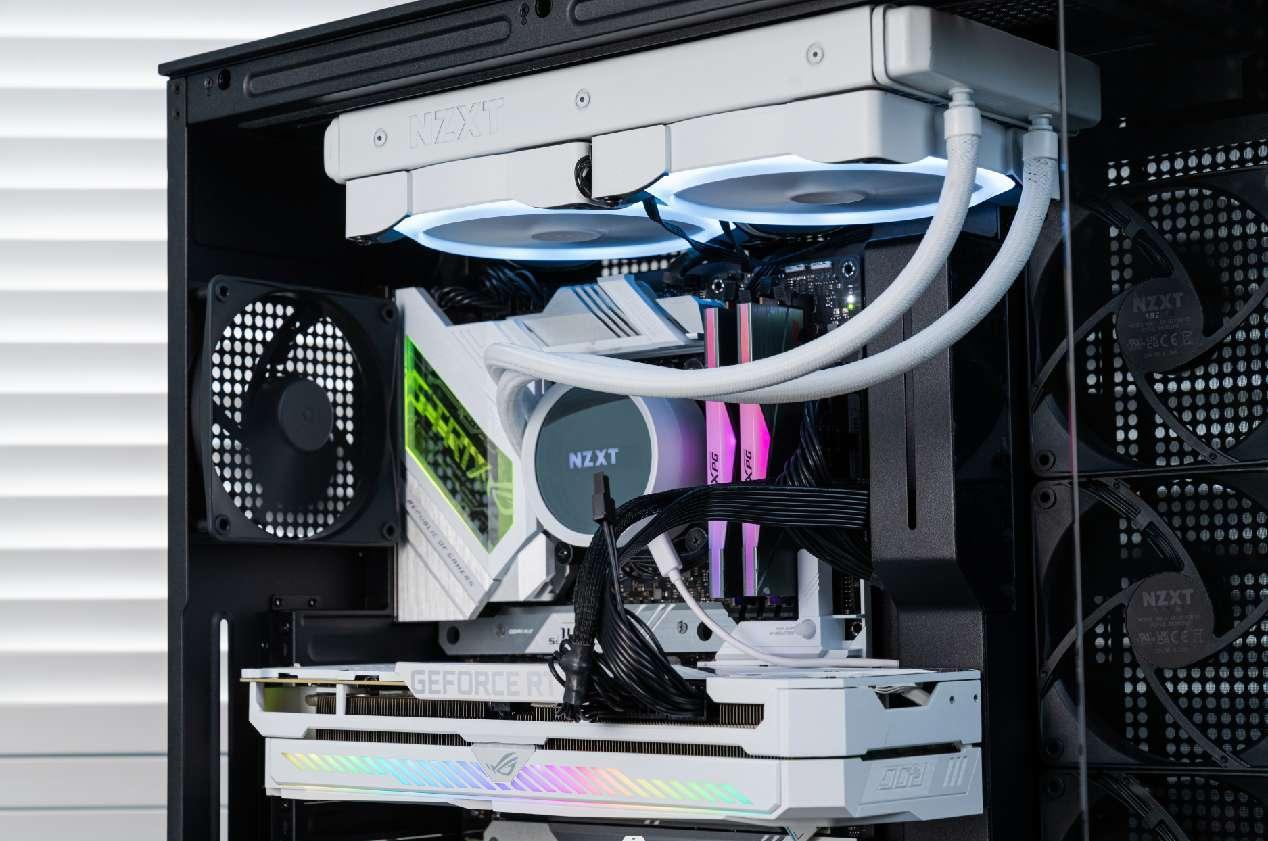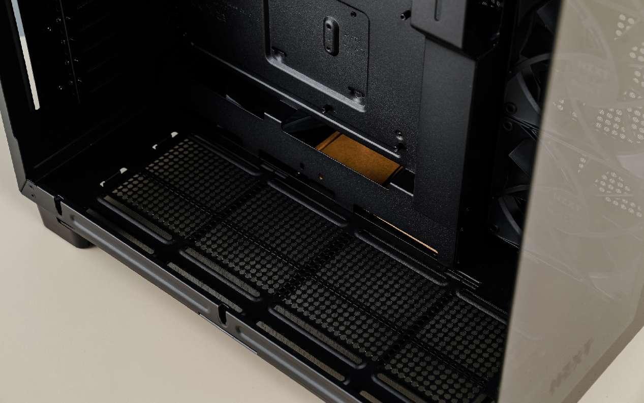 由于前面板和右侧面板为钢化玻璃材质,所以NZXT H9 Flow将常见的水平风道改成从机箱底部进风,热空气从左侧、底部和顶部排出的垂直风道设计。除了可以解决前部面板无法进气的问题,这样的风道还实现了对显卡的散热强化,确保旗舰显卡的火力全开。