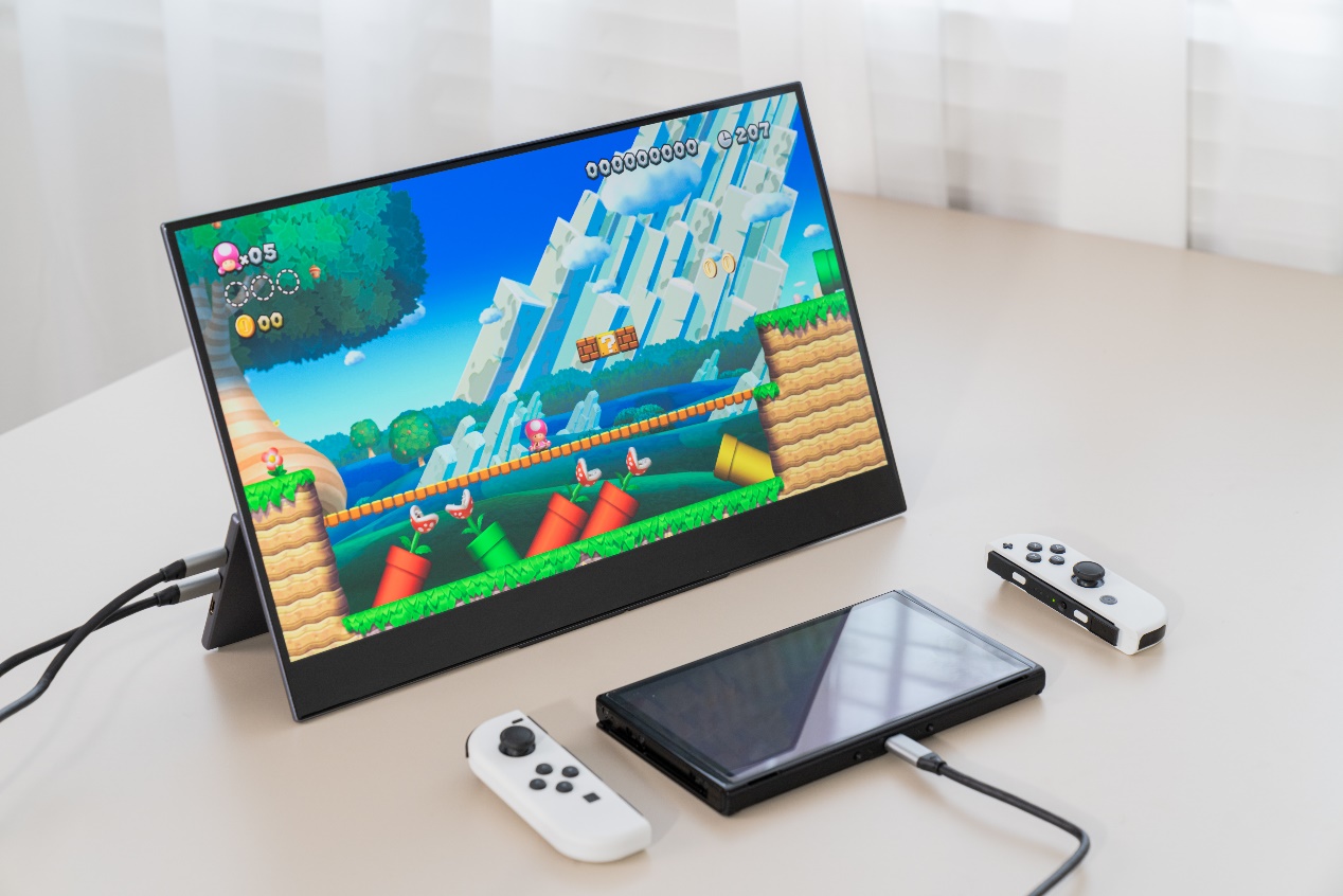另外,使用便携显示器的玩家群体有很大一部分都是游戏掌机用户。经过测试,在使用Switch掌机连接到雕塑家MU156LO1便携显示器时,可以直接使用Type-C一线连而不需要使用自带的底座就可以开启Switch掌机的主机模式,游戏体验比较不错。当然,出了连接Switch掌机,该显示器在连接Xbox Series X和PlayStation 5时,也能顺利开启4K/60Hz模式,打造自己的游戏小天地很方便。
