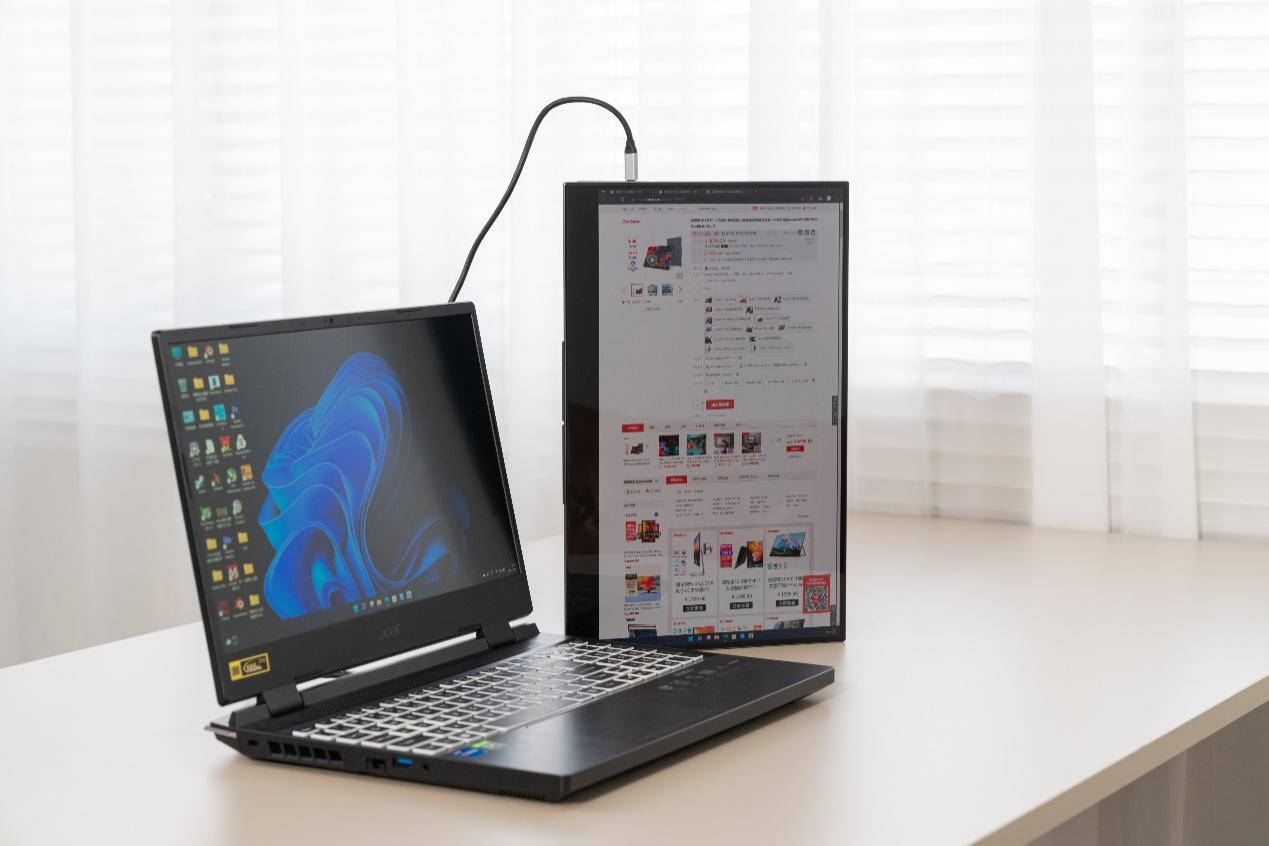 之前我们说到该显示器的接口非常丰富,除了使用常规的Mini HDMI接口连接电脑外,玩家也可以利用全功能Type-C外接各种设备。手机方面,在使用支持视频输出的手机(USB-C@DP Alt模式)如华为Mate系列/P系列、三星Galaxy系列时,可以顺利的实现视频输出,同时具备反向触控功能。如果手机同时还带有桌面模式,则也可以开启桌面模式使用。而且该显示器还内置了重力传感器,将该显示器竖置可以自动旋转画面,从而在连接手机时可以实现竖屏满屏显示和操作的体验,相比传统显示器在连接手机时只在屏幕中间显示手机内容,体验好了不少。