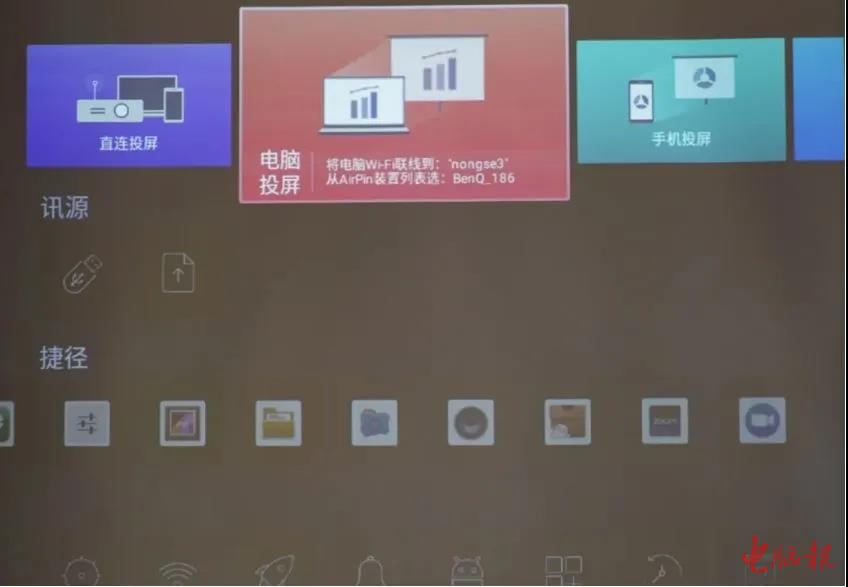明基E520的主界面,无线投屏功能成为其核心卖点,在主界面点击相关菜单根据连接向导即可轻松连接。