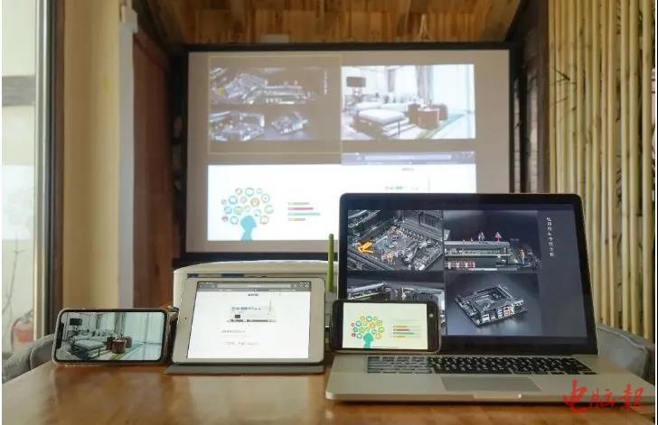 明基E520最多能支持4个设备同时投屏,此为白天开窗投屏效果