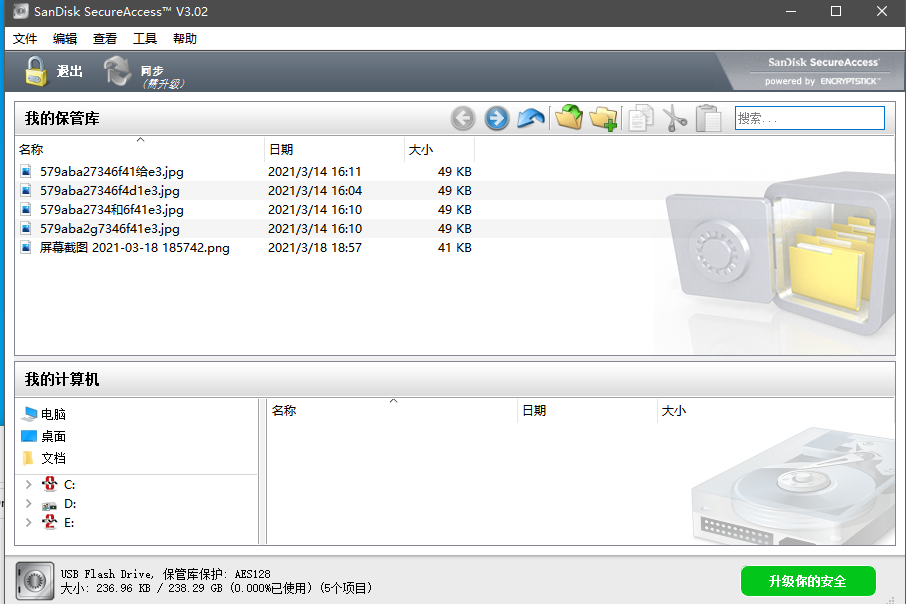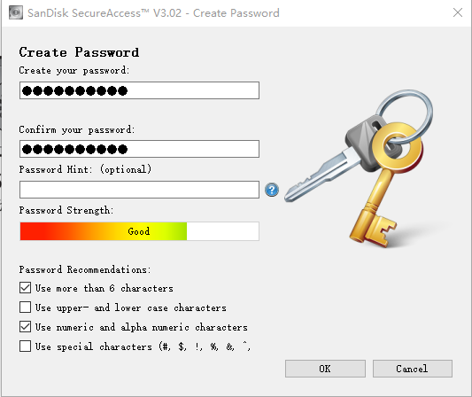 另外,这款U盘还支持闪迪自家的SanDiskSecureAccessV3加密软件,分别适用于Windwos和Mac系统,使用时直接打开U盘根目录下的软件,设置好密码就可以使用了,不过软件首次打开是英文界面,需要手动切换到中文,设置完成之后,就可以在任意一台电脑上使用加密空间存取文件了。