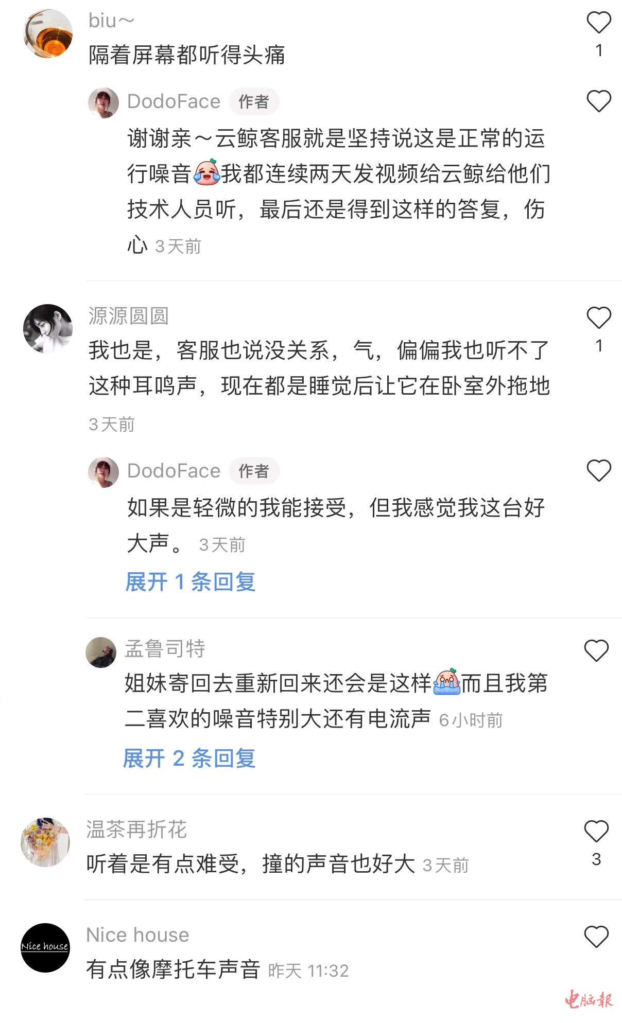 同时,小白鲸工作过程的动静也是挺大的,甚至还会加足马力发出碰撞声,不少用户都遇到了类似的问题,纷纷表示受不了这种程度的噪音。