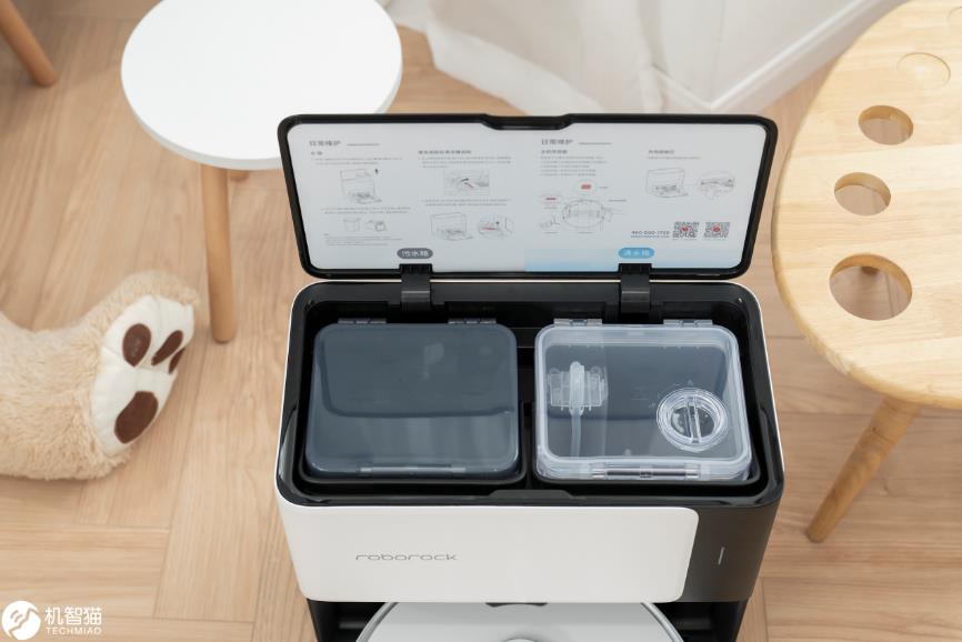 不过在正式开始清扫之前,还需要简单的一步——给自清洁底座内的清水箱加满水,剩下的流程就不用管了。
