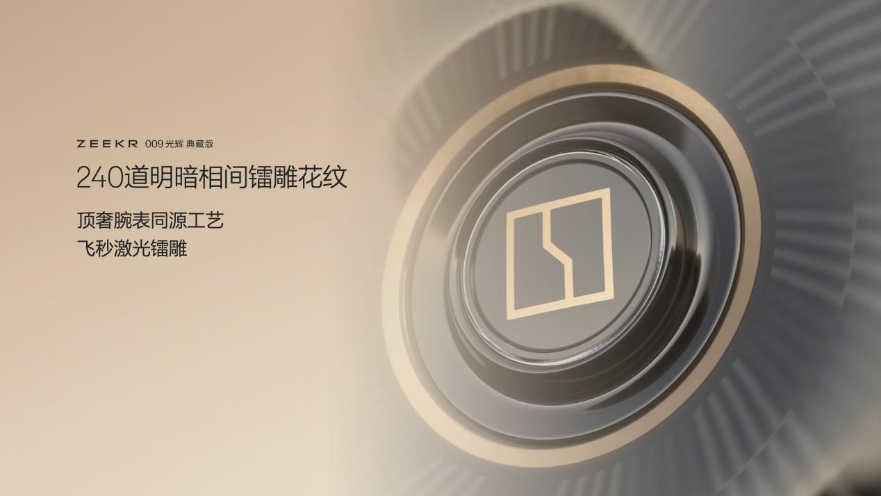 极氪009光辉典藏版足下生辉,四只20英寸耀金悬浮锻造轮毂不仅是造车杰作,更是流动的艺术品。每只轮毂都要经过10道工序的手工打磨,耗时20小时,方能呈现出深邃的镜面光泽。在此基础上,专门加入了PVD金属镀膜工艺,呈现出金属质感的亮黑光泽。同时,极氪还引入了顶级奢华腕表的表盘同款工艺——飞秒激光镭雕工艺!这项技术可以在PVD涂层之上,精密雕刻出240道明暗变化的细腻纹理,使轮毂无论是在转动还是静止的情况下,都可以呈现出最精湛的立体光影效果。