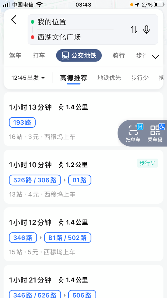 绿色出行相关的功能服务,近几年来一直是高德地图研发的重点之一:公交导航、骑行导航、步行导航等都在APP中占据了重要位置,为用户提供一体化规划、实时公交查询、公交/地铁拥挤度查询、未来用时查询等丰富的公共出行服务,特别是实时公交功能有效改善了“公交+步行”组合方式出行体验,能够帮助用户更具针对性地节省、利用日常出行时间。