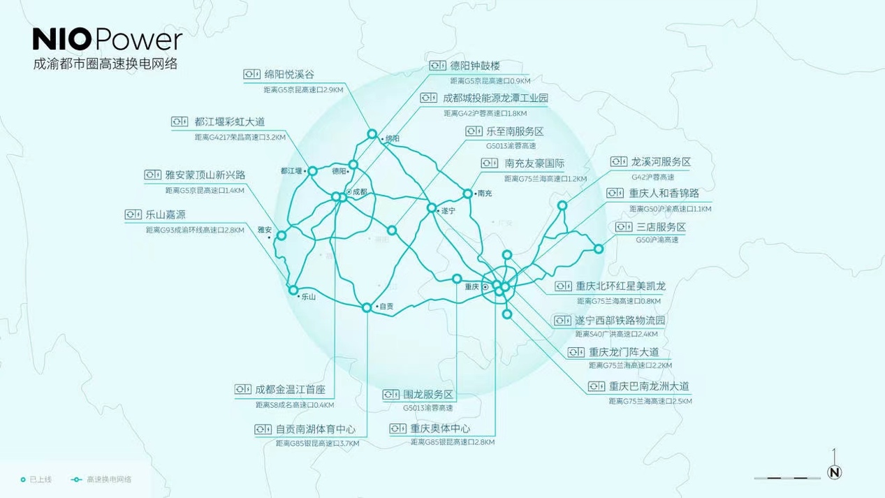 另外,针对高速公路换电网络布局,蔚来现已打通G50沪渝高速、成渝都市圈换电网络;到明年,蔚来重庆还计划建设G42沪蓉高速、G65包茂高速公路换电站。