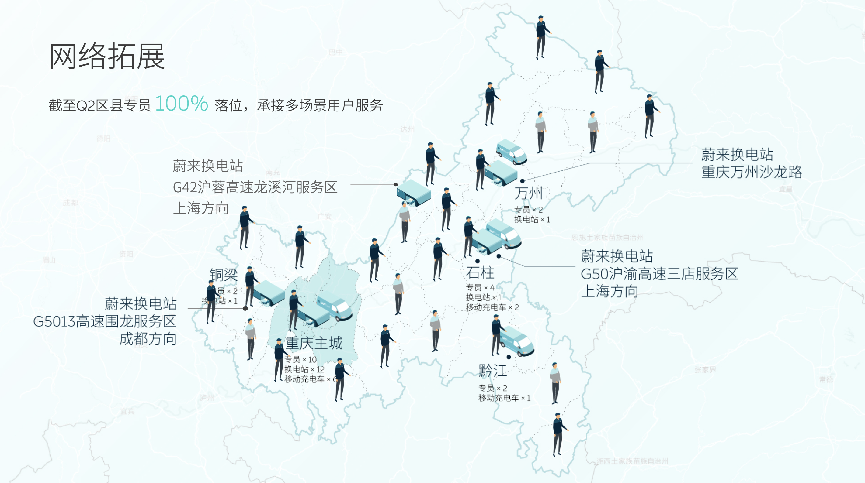 在重庆,蔚来持续布局换电网络以及全面的服务,也在让大家的出行体验更加愉悦便捷。早在今年5月,重庆市经信委制定印发《重庆市新能源汽车换电模式应用试点工作方案》,提出到2023年,计划在全市建成换电站200座以上。截止8月,蔚来在重庆已建设21座换电站,其中包括8座城际站、13座城区站。
