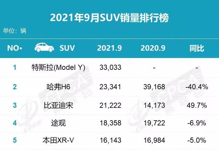 得益于强劲的产品力和极致的性价比,自2021年1月在中国开订以来,特斯拉Model Y 一举成为豪华SUV中炙手可热的选手,稳定多月热销过万。今年9月,Model Y更是凭借33033辆的市场表现,超越众多燃油SUV在榜单中独占鳌头。