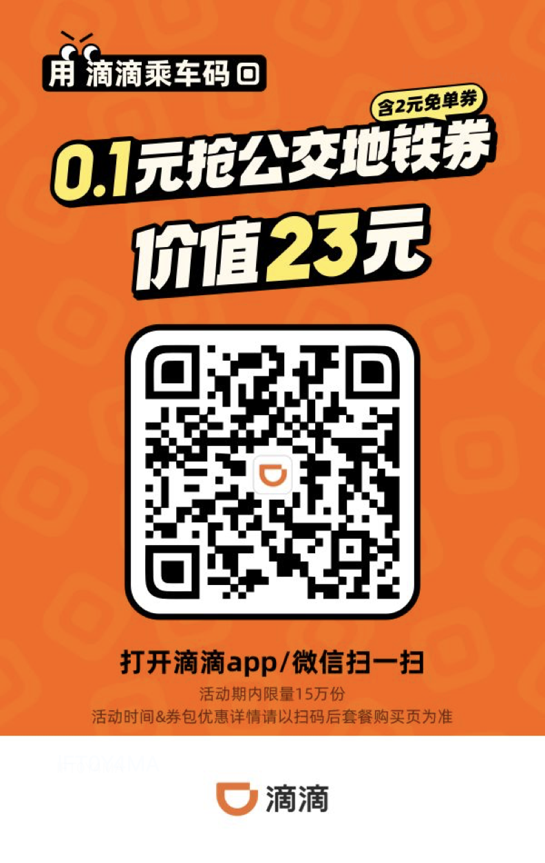 扫码领取滴滴公交地铁乘车福利
