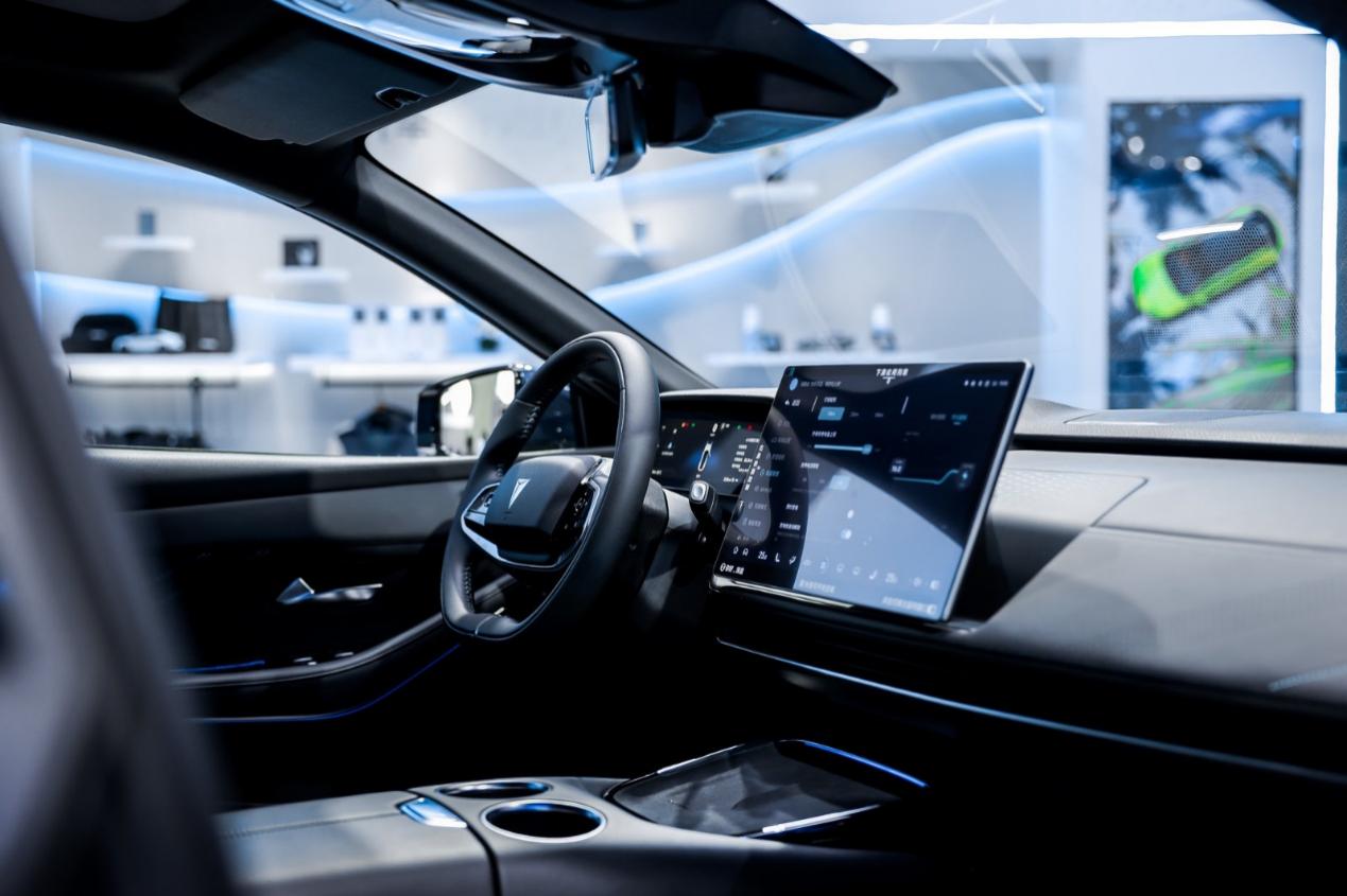 内饰上,SL03提供耀影黑、谧月白两款全新内饰配色,契合当下时尚潮流。通过全新色彩、时尚材质,实现科技与时尚完美融合。耀影黑以纯黑内饰搭配麂皮材质,再用青色缝线点缀,彰显高级品质;谧月白则以纯白勾勒未来质感,并在白色内饰中融合橙色,雕琢细节,更显年轻时尚。