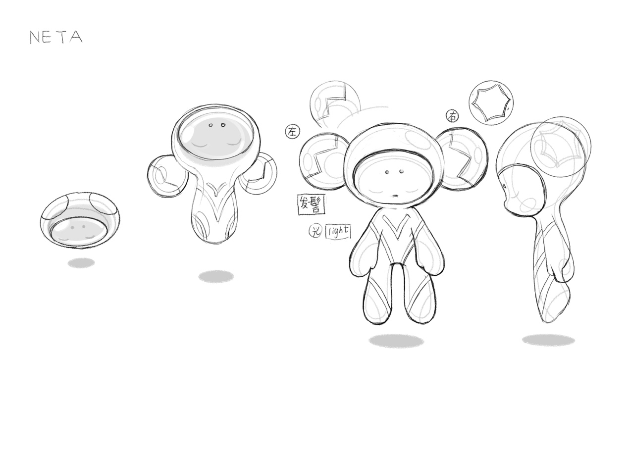 Q:呢仔主形象有三个非常特别的元素,一个是他的白色的外观,第二个是他的整体都是以圆弧作轮廓,第三是包裹它的橙色的光线。您可以介绍一下,以上元素有什么特殊的意义吗?