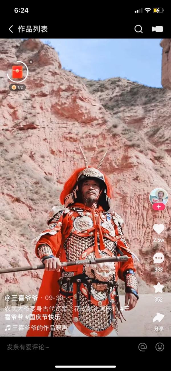这位老人更为人熟知的名字是“三喜爷爷”,今年65岁的他7月份开始在快手短视频平台分享自己的生活,短短几个月的时间,就收获了十几万粉丝的关注,以及上百万个点赞。最开始,三喜爷爷的视频展现的是他和外孙们在田间地头、阵阵稻香中嬉戏玩乐的天伦之乐;而后,他逐渐发布了一系列换装视频,时而化身上海外滩西装革履的老克腊,时而变为民国年代军装笔挺的西北军阀。荒漠侠客那条视频下,有网友留言问:“大侠您还缺小弟吗?”三喜爷爷秒回:“缺。”