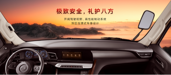极致安全,礼护八方。秉承国车安全理念,红旗国悦强化所有技术细节,在主动安全和被动安全方面都做到极致,保障出行无忧。主动安全方面,驾驶位上视野20度、下视野22度、A柱障碍角4.4度,打造足够开阔的驾驶视野,配合高性能制动系统和恰到好处的减速效果,让驾驶者从容应对各种突况,大大提升安全系数;被动安全方面,创新采用双区压溃式车身设计,赋予车体更强大的抗变形能力,筑起“坚强堡垒”,极致守护一路安全,让驾乘人员开心出行,放心归家。同时,红旗国悦还是同级中唯一满足交通部《客车正面碰撞的乘员保护》法规的车型,整体安全性能大幅领先竞品。