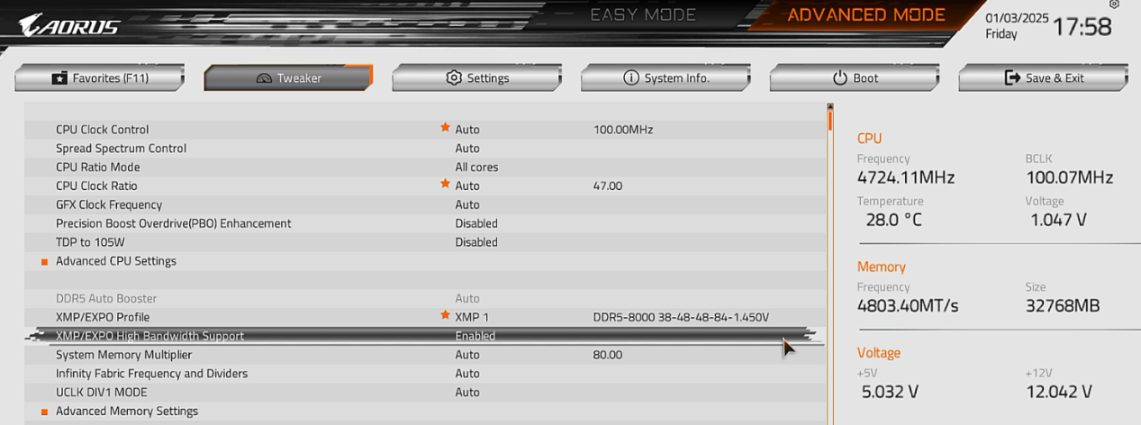 技嘉经典的D5黑科技,在B850冰雕上也是支持的。在BIOS中开启之后,可以进一步提升内存带宽,提升幅度最高可达10%。