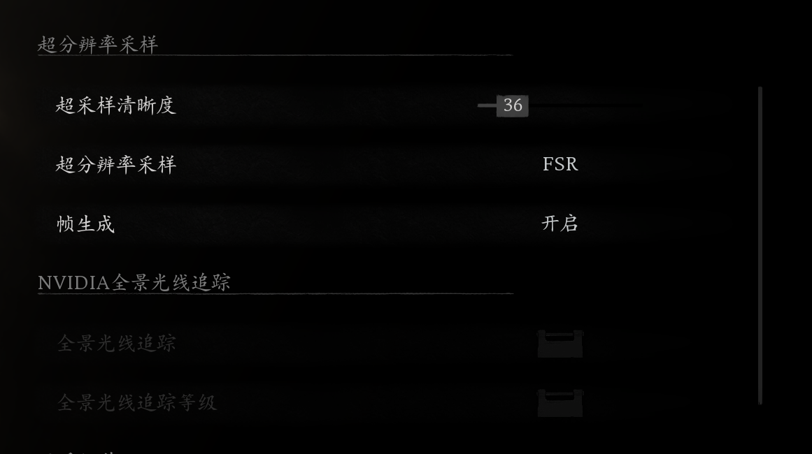 第三个核心选项是光追。有光追和没光追,画质来说区别很大,但区别更大的是帧率。可以说打开光追以后,帧率腰斩是非常正常的事情!建议一周目不要开光追,以获得流畅体验通关为主!