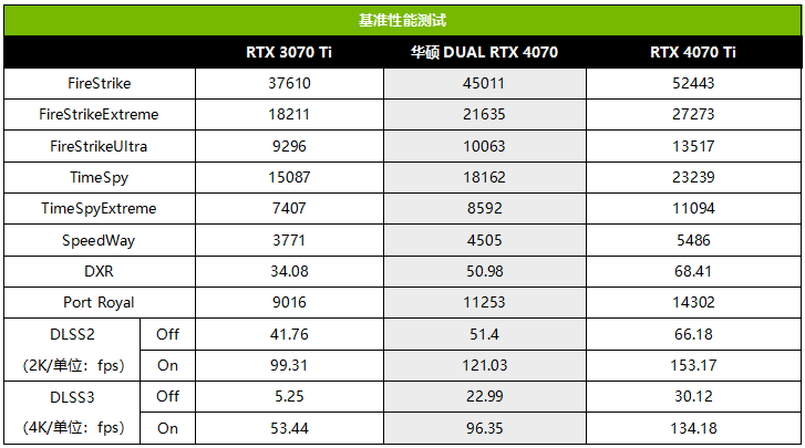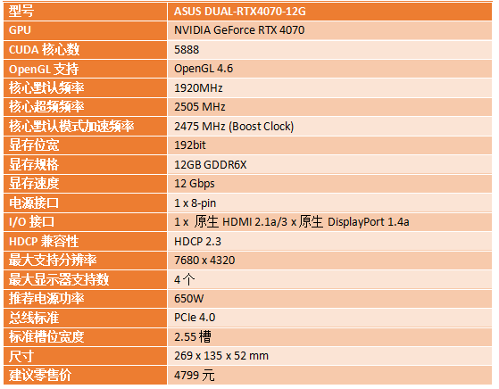 首先我们来看看华硕DUAL-RTX4070-12G的基本性能参数: