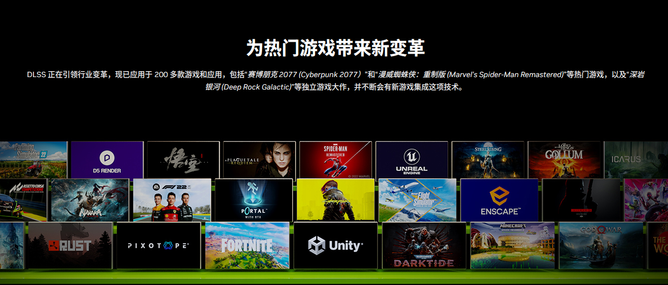 作为RTX系列显卡提升画质与帧率的专用黑科技,到RTX 40时代直接进化到了DLSS 3。得益于Ada架构中搭载的光流加速器,DLSS3拥有全新的光学多帧生成能力,游戏性能最高可提升4倍。DLSS 3的普及速度也非常惊人,目前已有超过35款游戏加入了DLSS 3的支持。此外,玩家在游戏里开启DLSS3技术会默认开启REFLEX,可以同时提升游戏帧率并降低游戏延迟。
