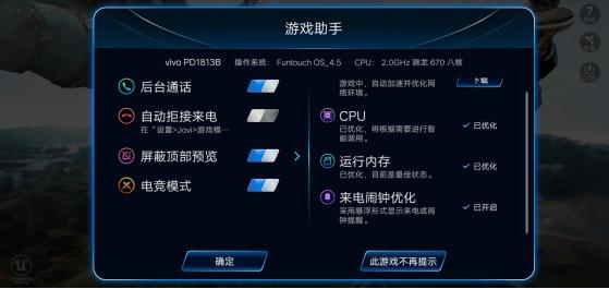 支持游戏助手,包括优化内存并且自动屏蔽通知等功能