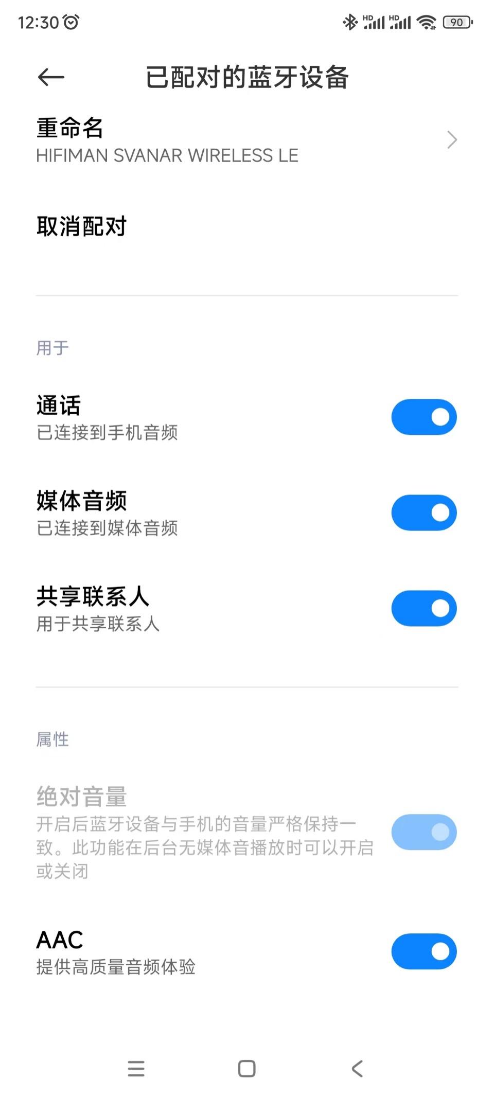 而HIFIMAN Svanar Wireless LE则是自动连接为AAC CODEC模式,这也是目前安卓和苹果平台上最主流的高音质codec模式。