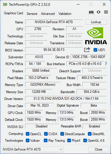 显卡:华硕TUF Gaming GeForce RTX 4070 OC