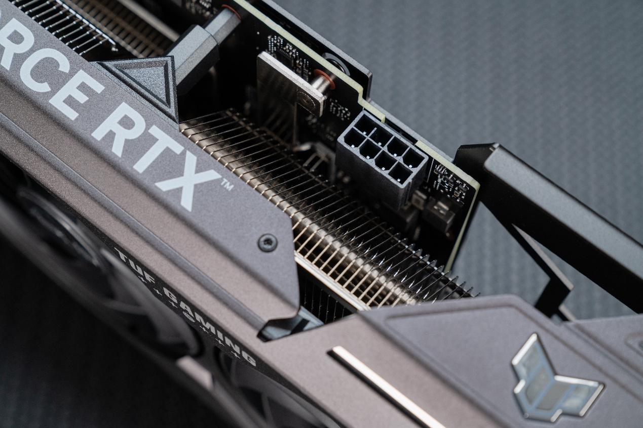 华硕TUF Gaming GeForce RTX 4070 OC显卡采用了标志性的华硕全自动化制程工艺,消除了人工在操作过程中的不确定性,让显卡的品质更出色。供电方面延续了超合金供电系统。显卡采用了10+2(50A)供电系统,对于这样一款TGP仅为200W的显卡来说,可以说是非常富裕了,这样的供电规格足为显卡在长时间高频状态运行,提供充足而稳定的动力。