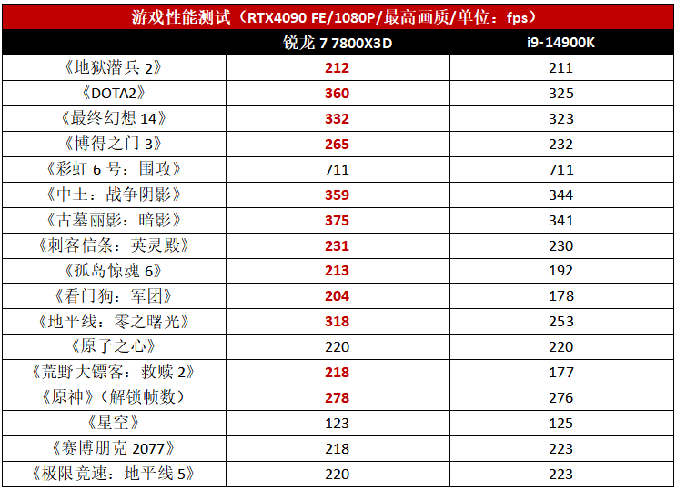 虽说与锐龙7 9800X3D相比,锐龙7 7800X3D的游戏性能要稍逊一筹,不过在竞品面前依然优势明显。和Intel当前游戏性能最强的酷睿i9-14900K相比,锐龙7 7800X3D的综合游戏表现依然全面领先。而且锐龙7 7800X3D的功耗表现同样出色,游戏功率还不到70W,谁还说高性能游戏CPU就一定是高功耗?