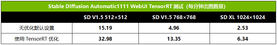 ▲在Stable Diffusion中使用NVIDIA TensorRT优化的Unet以大幅提升RTX 40 GPU的出图效率