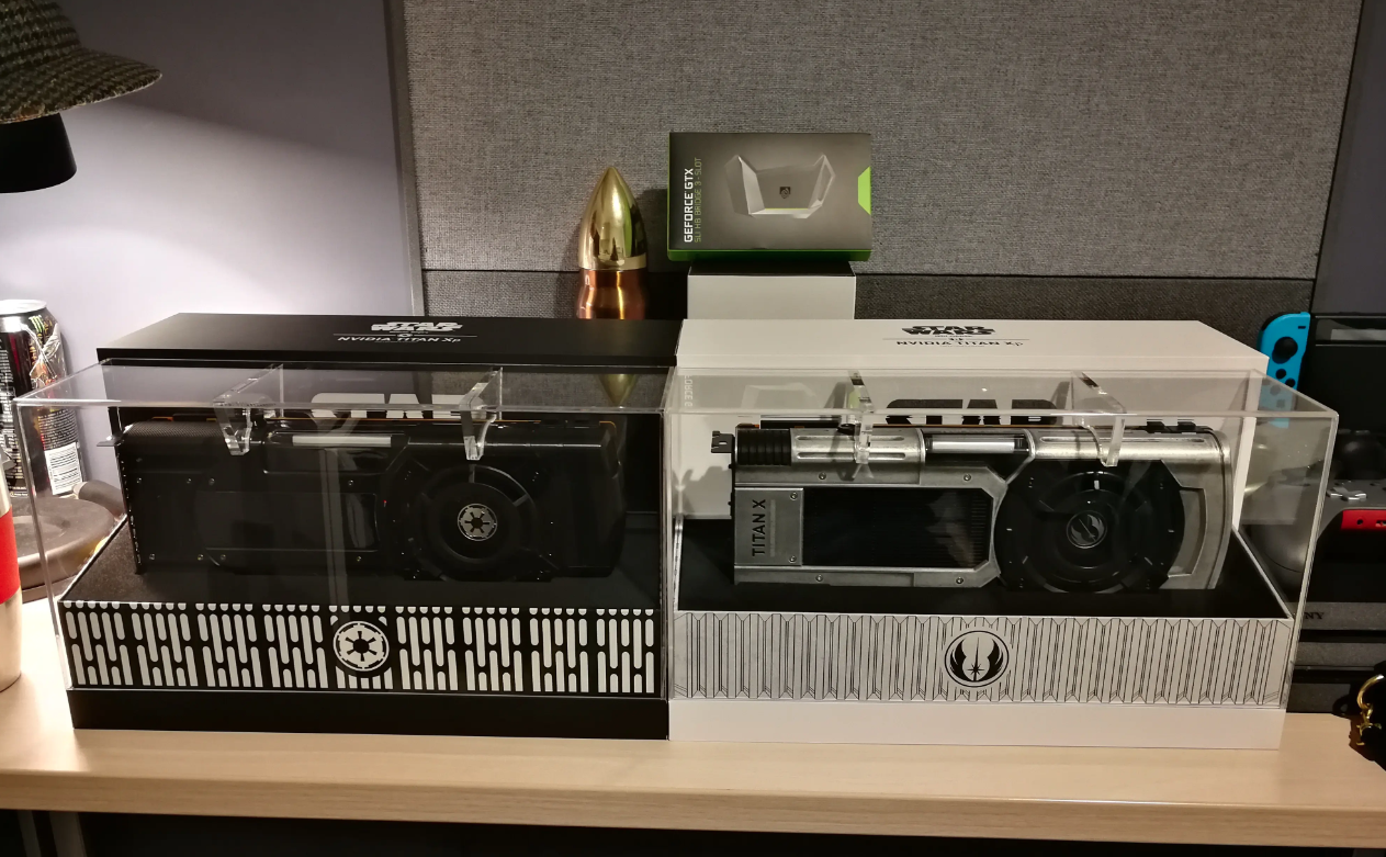 要知道他们心目中的显卡联名版都是经过精心打造的。比如为星球大战发烧友推出的Titan Xp Star Wars Collector’s Edition,处处体现星球大战世界的经典元素,例如卢克·天行者的光剑剑柄和让人联想到死星的光面板。绝地教团版 GPU 的压铸铝制外壳大面积经受腐蚀盐雾侵蚀,其设计思想参考义军同盟使用的许多装备,凸显战斗磨损和战痕累累的沧桑之感。相比之下,银河帝国版 GPU 外形线条简洁、棱角鲜明,彰显出帝国资源丰富,强调高端和有序特质。